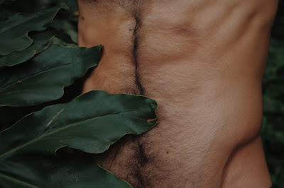 | El agua remarca un pubis que no deja de atraer miradas. Otra celebración al hombre natural. |